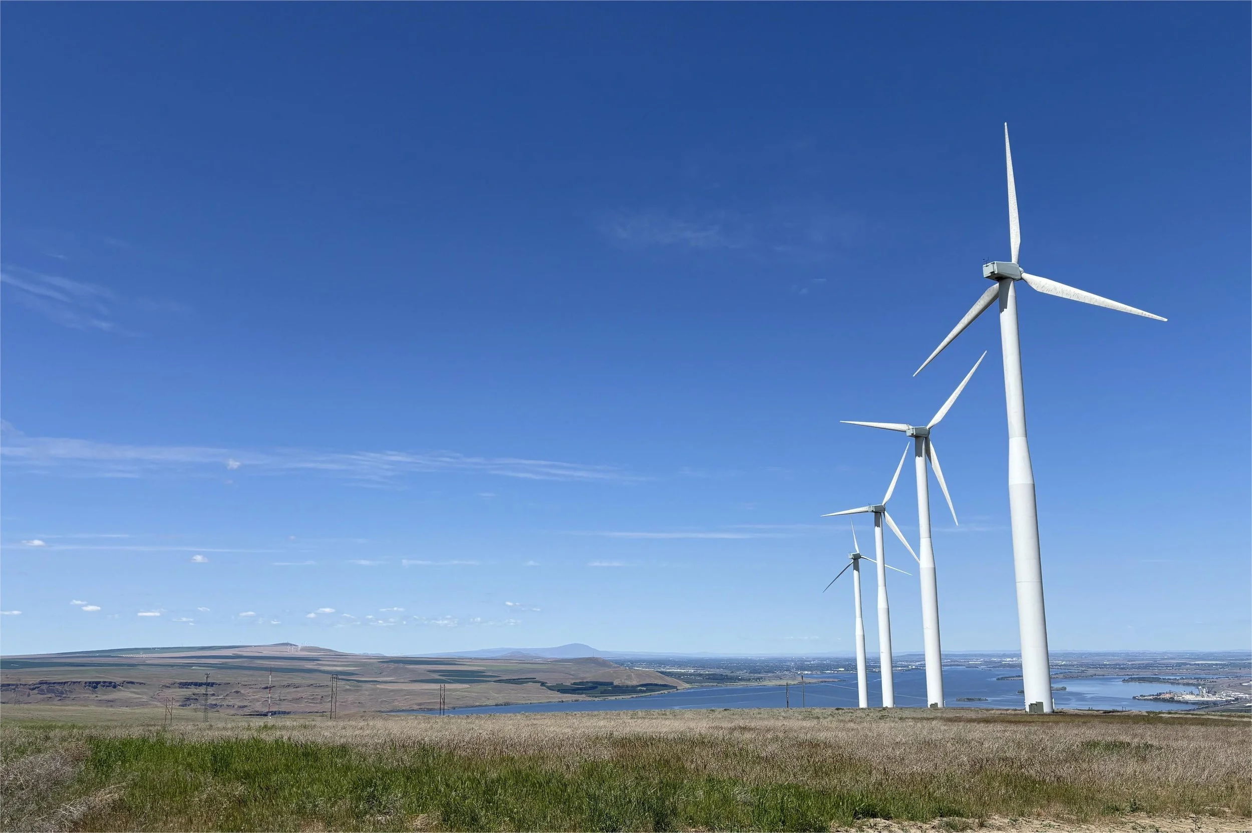 Turn East on Hwy 12 for several miles to Wallula Junction. The route turns back to gravel as it goes up Hatch grade to one of the first wind farm sites in the valley. Stop at the top and take in the expansive views of the Columbia River. Walk up to the tower of a wind machine. While these seem massive, these are small machines compared to the new versions being installed elsewhere.